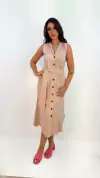 Vestido longo botão bombê e babado Vestido longo botão bombê e babado